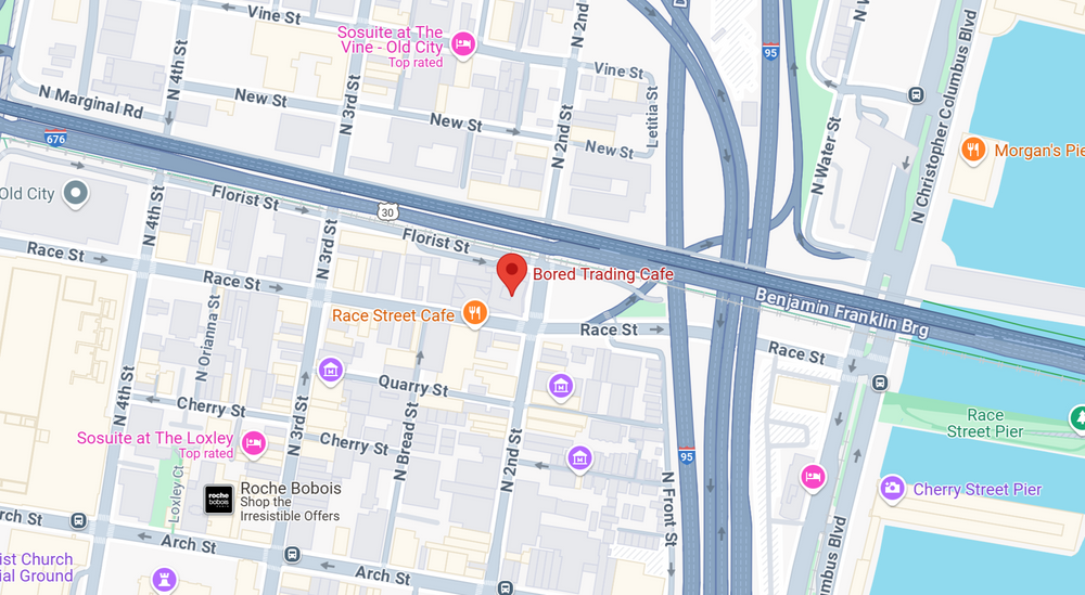 Bored Trading Cafe is a fast casual, counter service offering a curation of options including smash burgers, salads, cookies, and much more. Bored Trading Cafe acts as a showroom for several MBA products and incorporates some in the menu. (full menu)